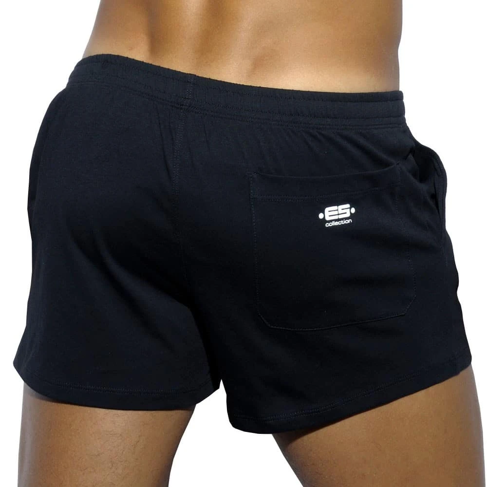 Short taille basse, sport et sexy en pur coton. 2 poches sur les cĂŽtĂ©s et 1 Ă l’arriĂšre. Braguette factice. Ecusson ES Collection sur la cuisse gauche. Ceinture Ă©lastique avec cordon de serrage intĂ©rieur.