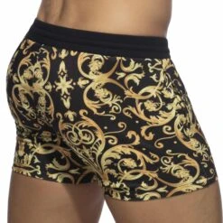 Short de sport en molleton italien de qualité premium. Motif baroque doré inspiré de Versailles. 2 poches latérales. Ceinture élastique avec cordon de serrage. Logo AD en silicone sur la jambe gauche.