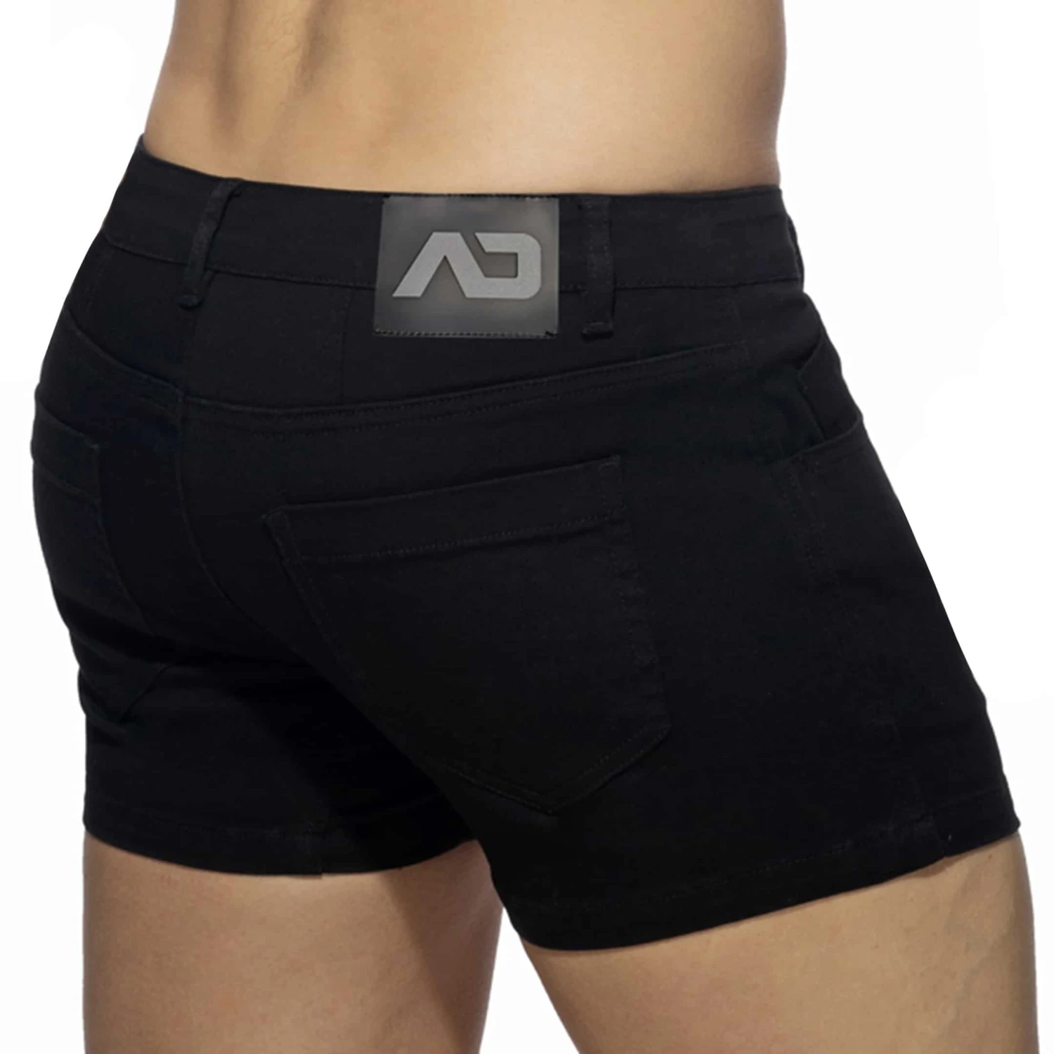 Short court en coton stretch, doux lĂ©ger et respirant, parfait pour l’Ă©tĂ©. 5 poches. Passants de ceinture. Coutures style jean. Braguette Ă bouton et fermeture Eclair. Grand logo AD en silicone Ă l’arriĂšre.
