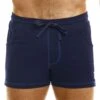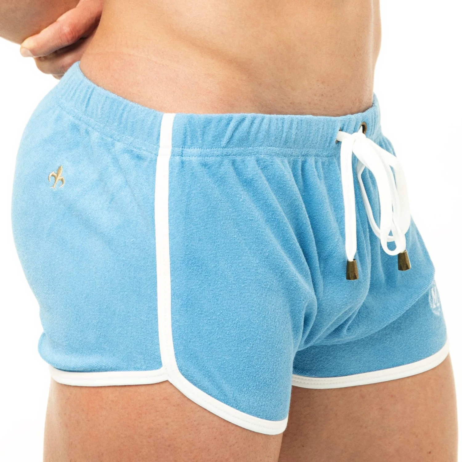 Short sport taille basse en coton éponge, doux et confortable. Coupe rétro, trÚs ajustée, et échancrée sur les cÎtés. Logo Marcuse brodé sur la cuisse gauche. Ceinture élastique avec cordon de serrage.