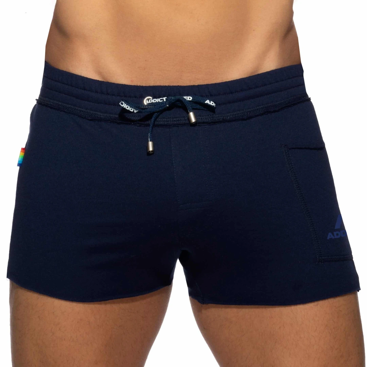 Short de sport en tissu italien de qualité premium. Logo Addicted ton-sur-ton sur la poche latérale plaquée. Ruban arc-en-ciel sur le cÎté droit. Poche intérieur Kango pour un grand confort frontal. Ceinture élastique avec cordon de serrage.
