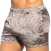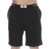 Short luxueux et confortable en coton doux avec un aspect velours. 3 poches. Braguette factice. Logo en gomme sur la cuisse gauche. Ceinture élastique avec cordon de serrage.