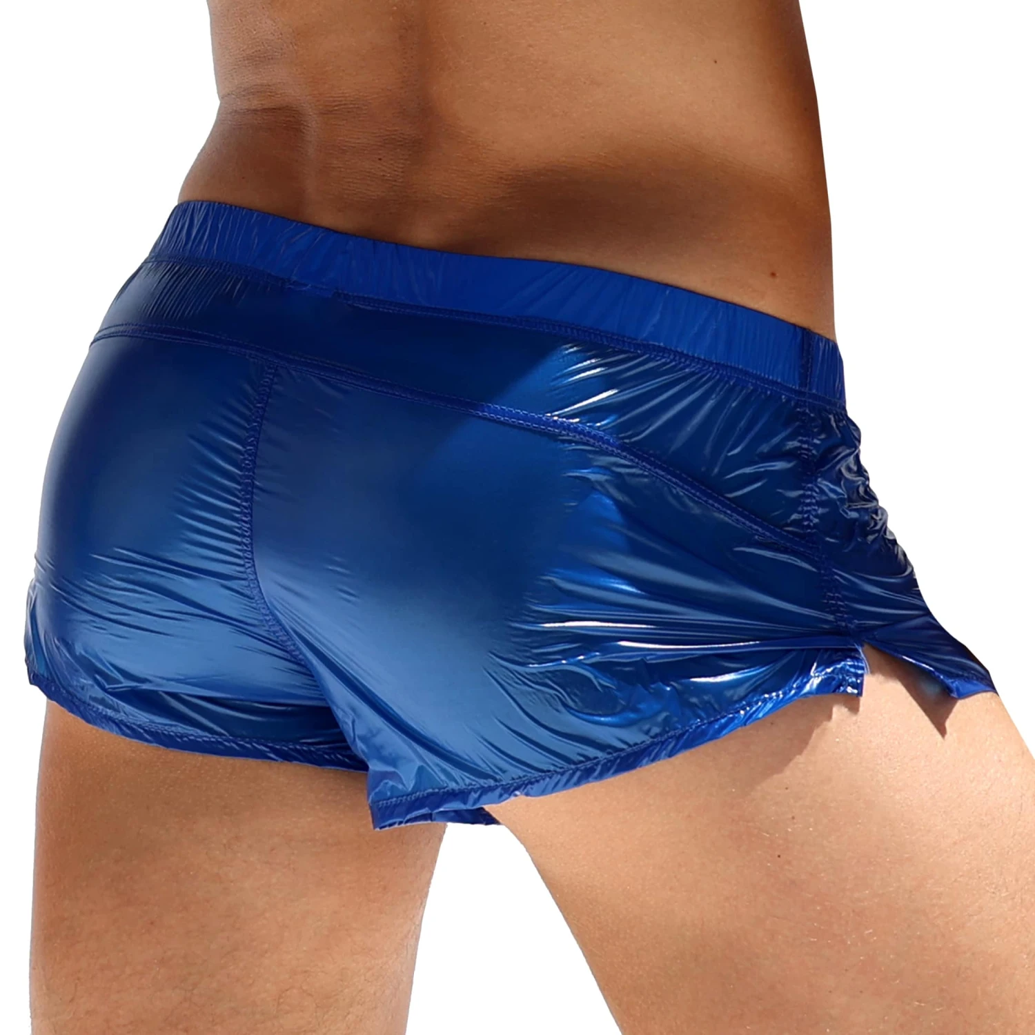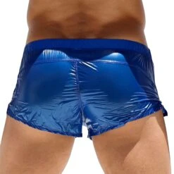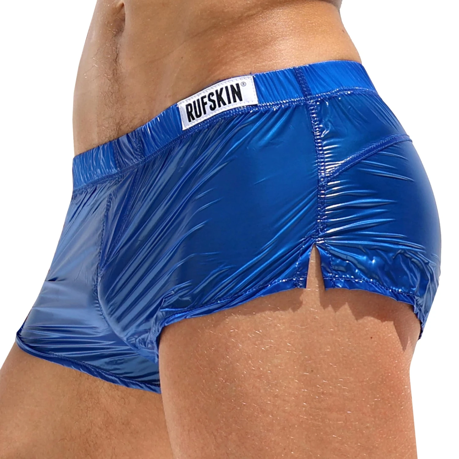 Short trÚs sexy en tissu transparent et ultra léger. A porter par-dessus un maillot de bain ou sans rien dessous ! Coupe courte et échancrée sur le cÎté. Braguette factice. Ceinture élastique recouverte signée Rufskin. Fabriqué en Californie.