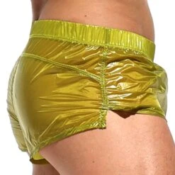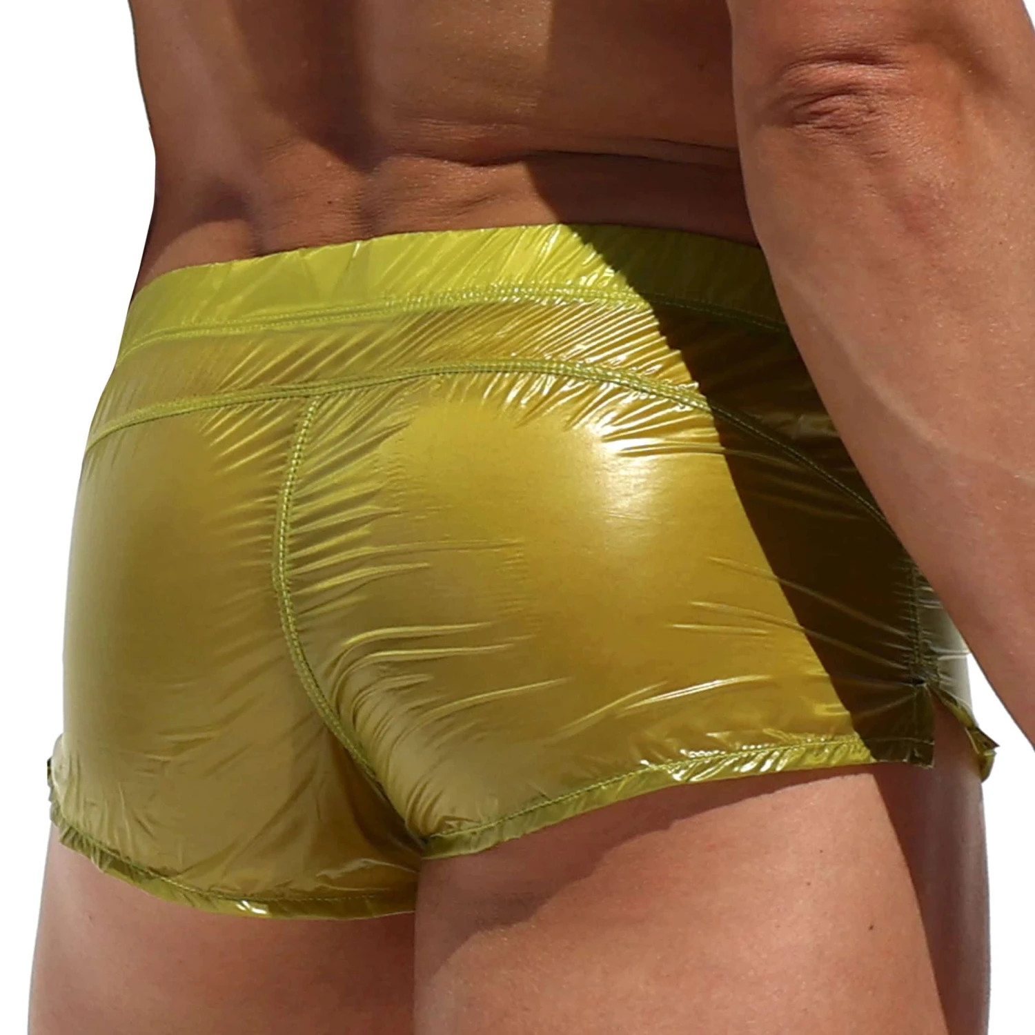 Short trÚs sexy en tissu transparent et ultra léger. A porter par-dessus un maillot de bain ou sans rien dessous ! Coupe courte et échancrée sur le cÎté. Braguette factice. Ceinture élastique recouverte signée Rufskin. Fabriqué en Californie.