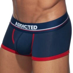 Shorty taille basse trĂšs ajustĂ© en coton doux et confortable. Poche frontale non doublĂ©e. Bordures de couleur contrastĂ©e. Ceinture Ă©lastique signĂ©e Addicted. EXCLUSIVITE : coupe conçue par Les Dessous d’Apollon – Inderwear.