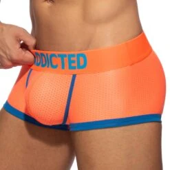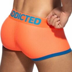 Shorty taille basse trĂšs ajustĂ© en mesh sport respirant et confortable de couleur fluo. Poche frontale non doublĂ©e. Bordures de couleur contrastĂ©e. Ceinture Ă©lastique signĂ©e Addicted. EXCLUSIVITE : coupe conçue par Les Dessous d’Apollon – Inderwear.
