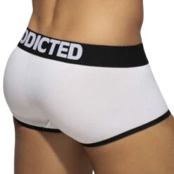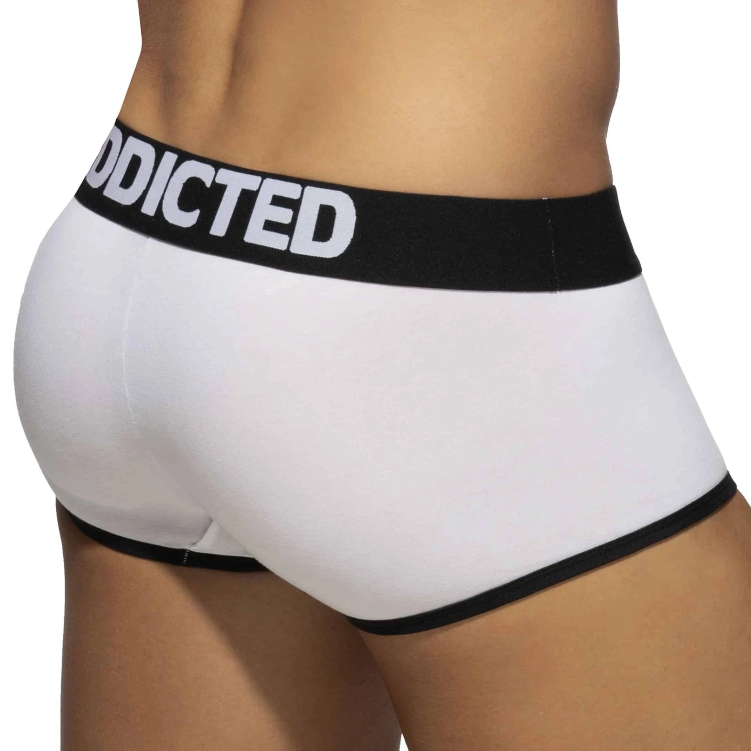 Shorty taille basse en coton stretch doux et confortable. Poche frontale non doublée. Détails de couleur contrastée. Ceinture élastique signée Addicted.