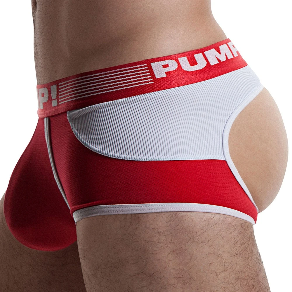 Shorty taille basse, en mesh doux, respirant et confortable. L’arriĂšre a Ă©tĂ© dĂ©coupĂ©, Ă la maniĂšre d’un jockstrap, afin d’offrir une totale libertĂ© de mouvement. EmpiĂšcements en microfibre cĂŽtelĂ©e sur les cĂŽtĂ©s et le haut des fesses. Bordures de couleur contrastĂ©e. Ceinture Ă©lastique signĂ©e PUMP!.