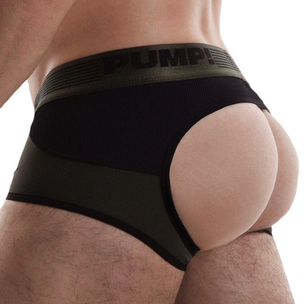 Shorty taille basse, en mesh doux, respirant et confortable. L’arriĂšre a Ă©tĂ© dĂ©coupĂ©, Ă la maniĂšre d’un jockstrap, afin d’offrir une totale libertĂ© de mouvement. EmpiĂšcements en microfibre cĂŽtelĂ©e sur les cĂŽtĂ©s et le haut des fesses. Bordures de couleur contrastĂ©e. Ceinture Ă©lastique signĂ©e PUMP!.