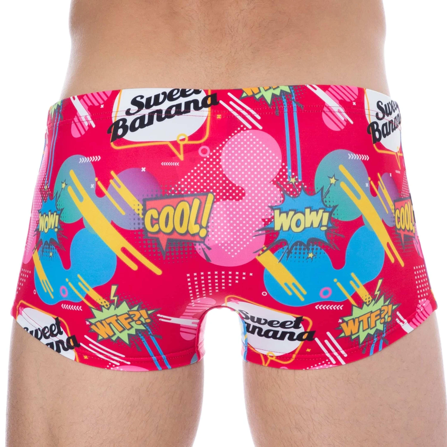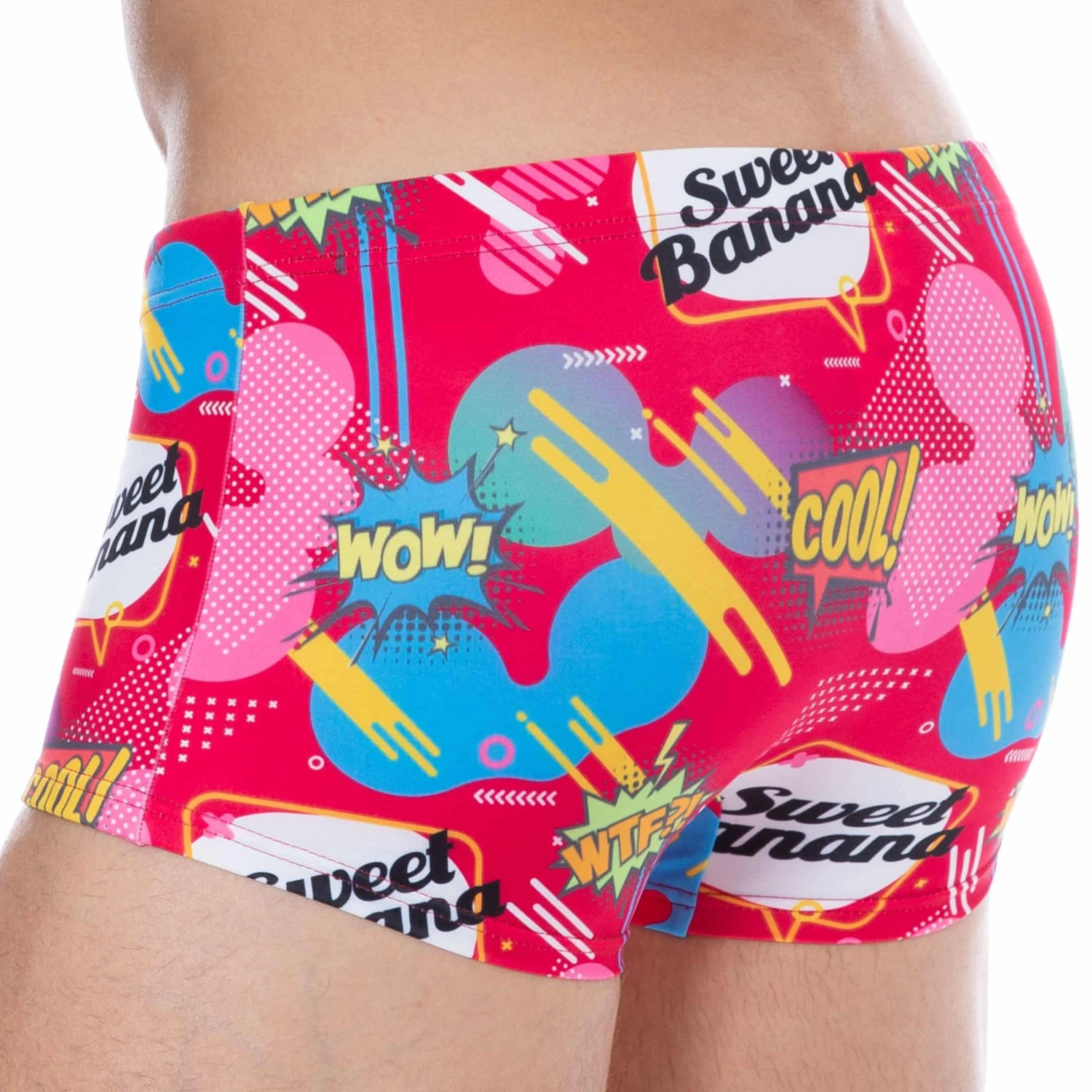 Shorty de bain trÚs sexy en microfibre extensible et résistante, séchant rapidement. Imprimé cartoon trÚs tendance. Coupe taille basse et trÚs ajustée. EntiÚrement doublé. Ceinture élastique avec cordon de serrage intérieur. Fabrication 100% italienne.