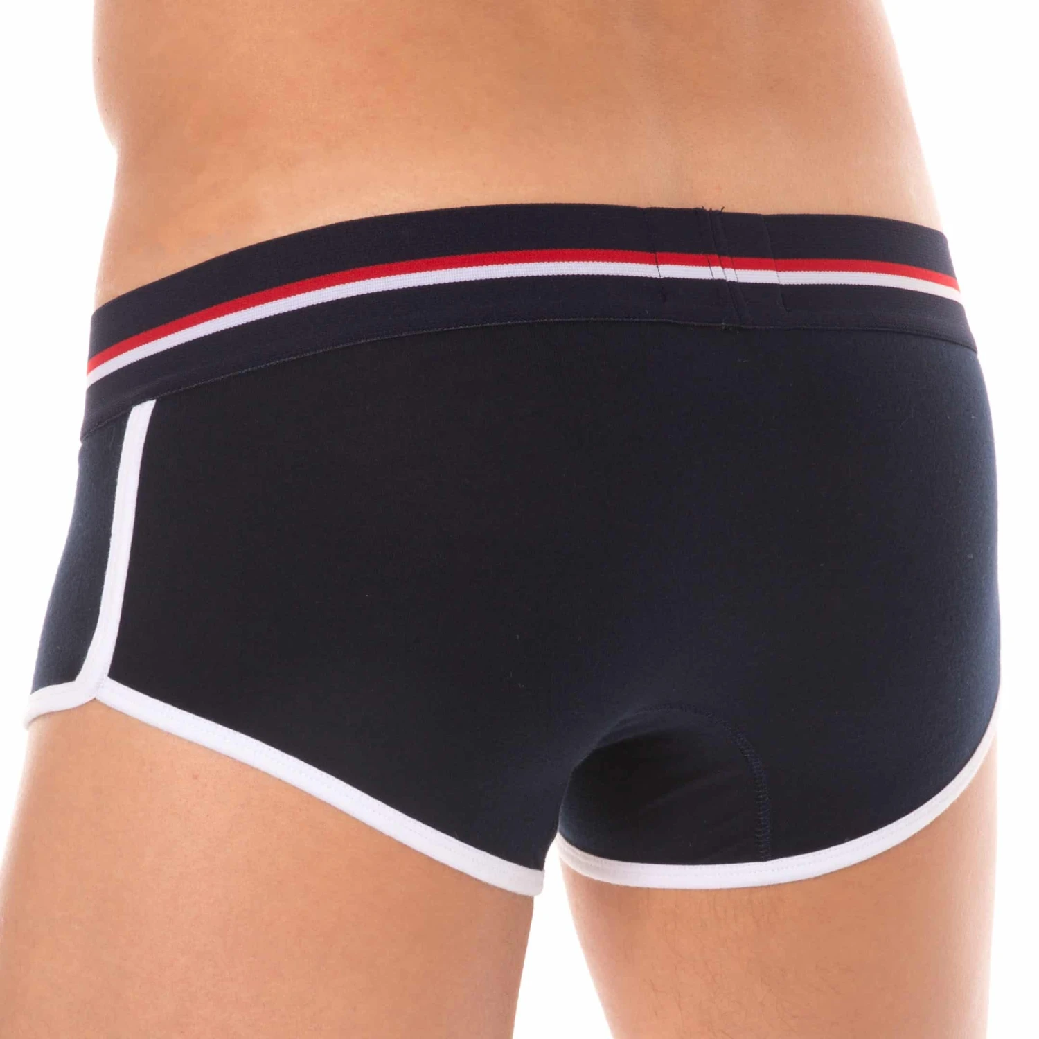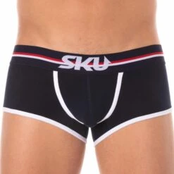 Shorty sport et sexy en coton premium doux et extensible de couleur intense. Coupe taille basse ajustée. Poche frontale préformée assurant un excellent maintien. Confort enveloppant sur les fesses. Belle échancrure sur le cÎté. Ceinture tricolore large et douce signée SKU. Bordures contrastées.