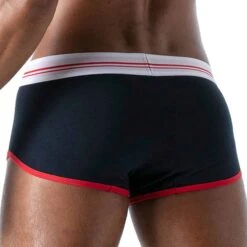 Shorty taille basse en coton stretch. Grande poche frontale doublée. Bordures de couleur contrastée. Superbe coupe incurvée sans couture sur les cÎtés, pour un grand confort et de belles fesses rondes. Ceinture élastique jacquard signée TOF. Fabrication française.