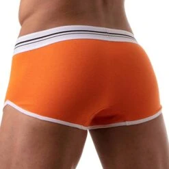 Shorty taille basse en coton stretch. Grande poche frontale doublée. Bordures de couleur contrastée. Superbe coupe incurvée sans couture sur les cÎtés, pour un grand confort et de belles fesses rondes. Ceinture élastique jacquard signée TOF. Fabrication française.
