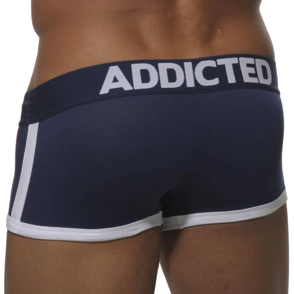 Boxer taille basse en coton super confortable. SystÚme Pack Up intégré pour un effet push up maximal. Ceinture Addicted. Bandes latérales et bordures de couleurs contrastées.