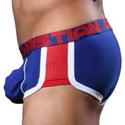 Shorty taille basse en coton doux, léger et confortable. Coupe sport échancrée avec empiÚcement en mesh sur le cÎté. Technologie Show-It pour un maintien parfait et un effet push up garanti. Détails de couleur contrastée. Ceinture élastique amincissante signée Andrew Christian. Edition Limitée.