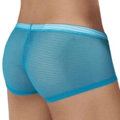Shorty transparent en résille extensible, douce et respirante. Fines rayures horizontales. Poche frontale préformée non doublée, pour un excellent maintien. Coupe taille basse super ajustée. Ceinture élastique recouverte.