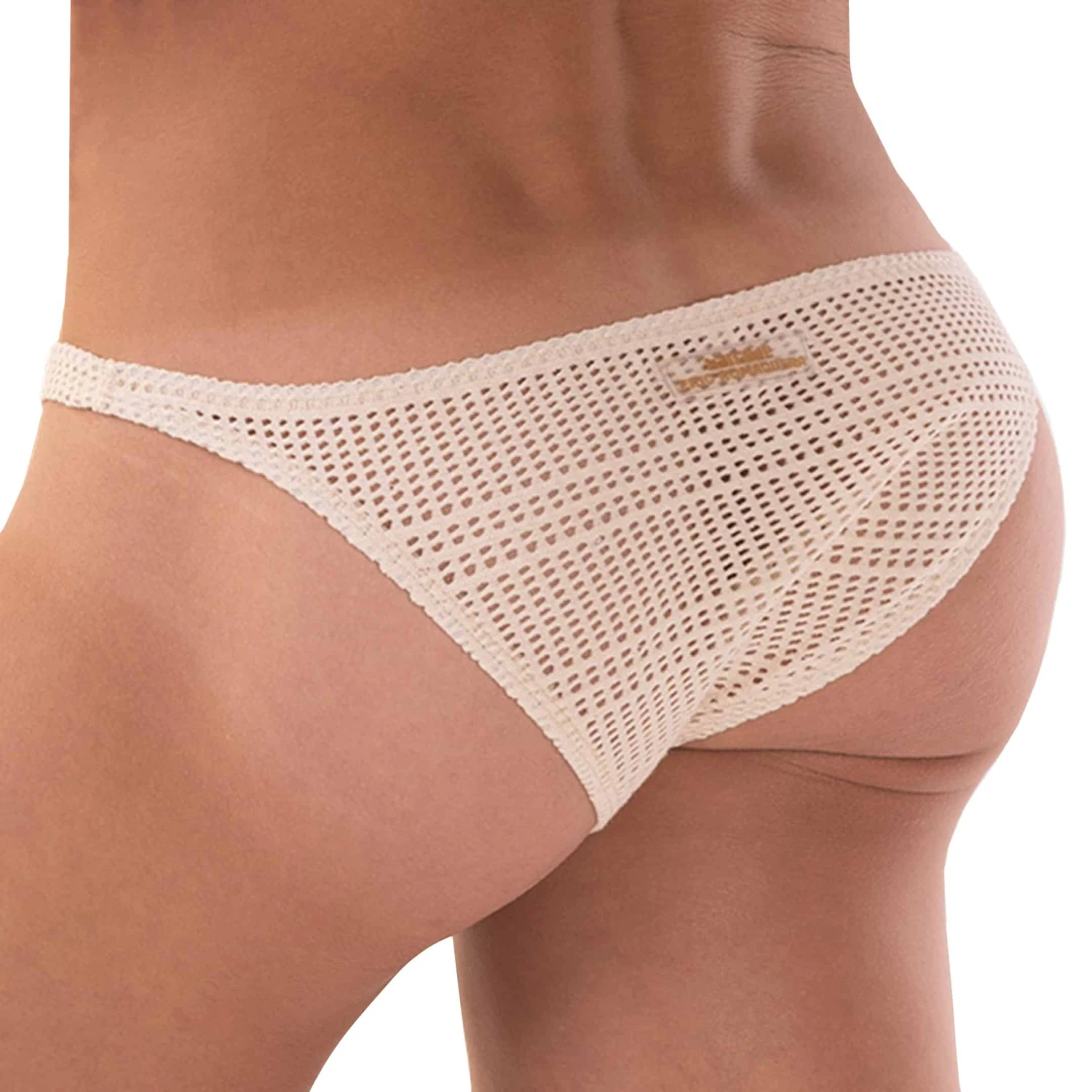 Slip taille basse trÚs sexy en résille non doublée pour une totale transparence. Coupe minimaliste trÚs ajustée. Etiquette Barcode en silicone en haut des fesses.