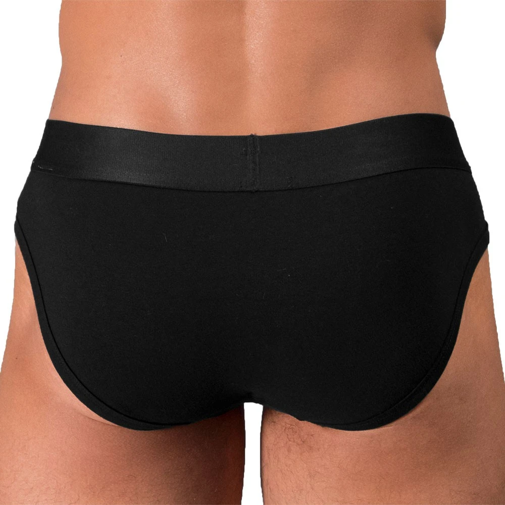 Slip taille basse en coton doté de la technologie Package pour un effet push up garanti. Vos attributs sont à la fois soulevés et projetés en avant grùce à la double action de la poche intérieure « Package Enhancer » et de la mousse amovible . Ceinture élastique signée Rounderbum.