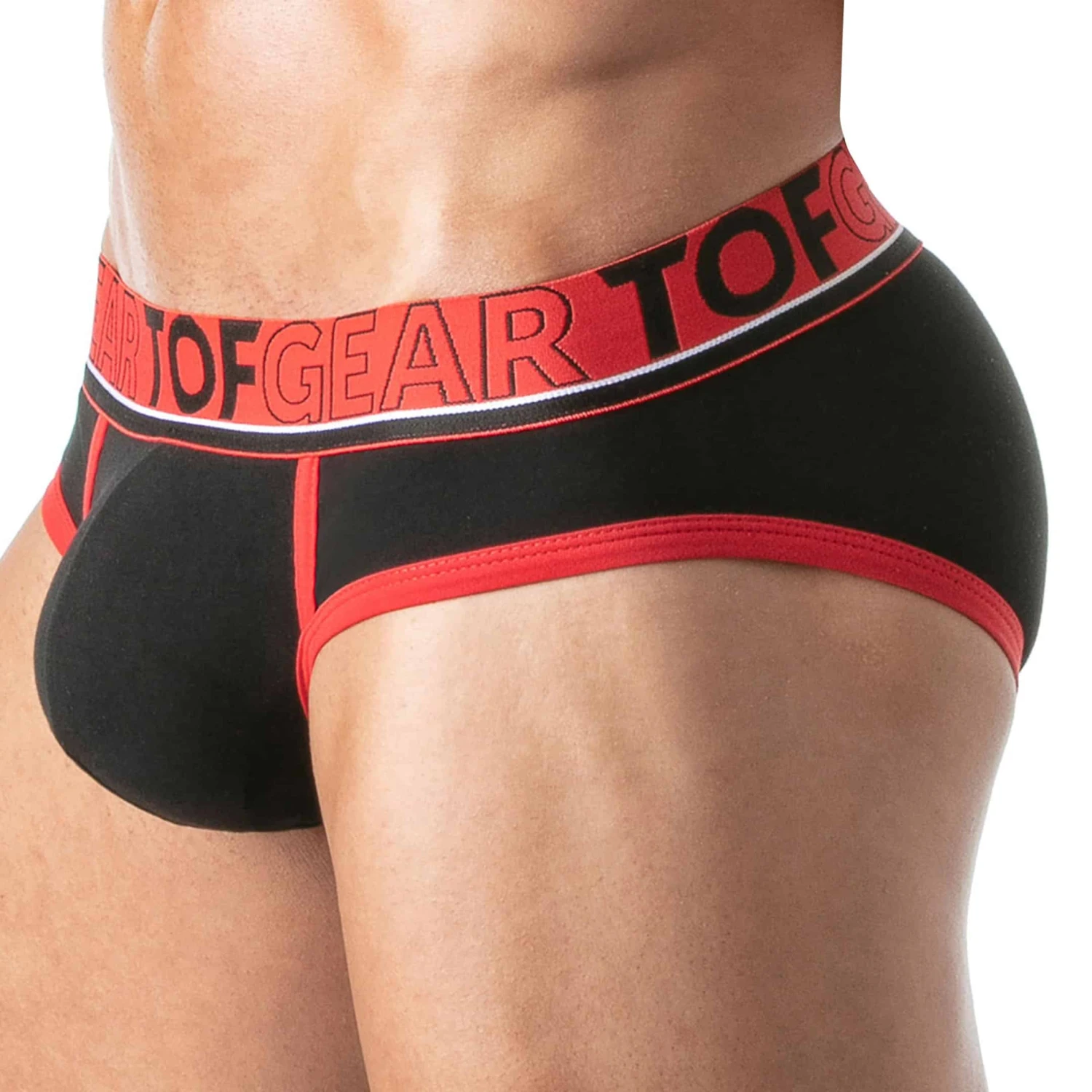 Slip taille basse en coton extensible. Grande poche frontale non doublée. Bordures de couleur contrastée. Ceinture élastique jacquard signée TOF GEAR. Fabrication française.
