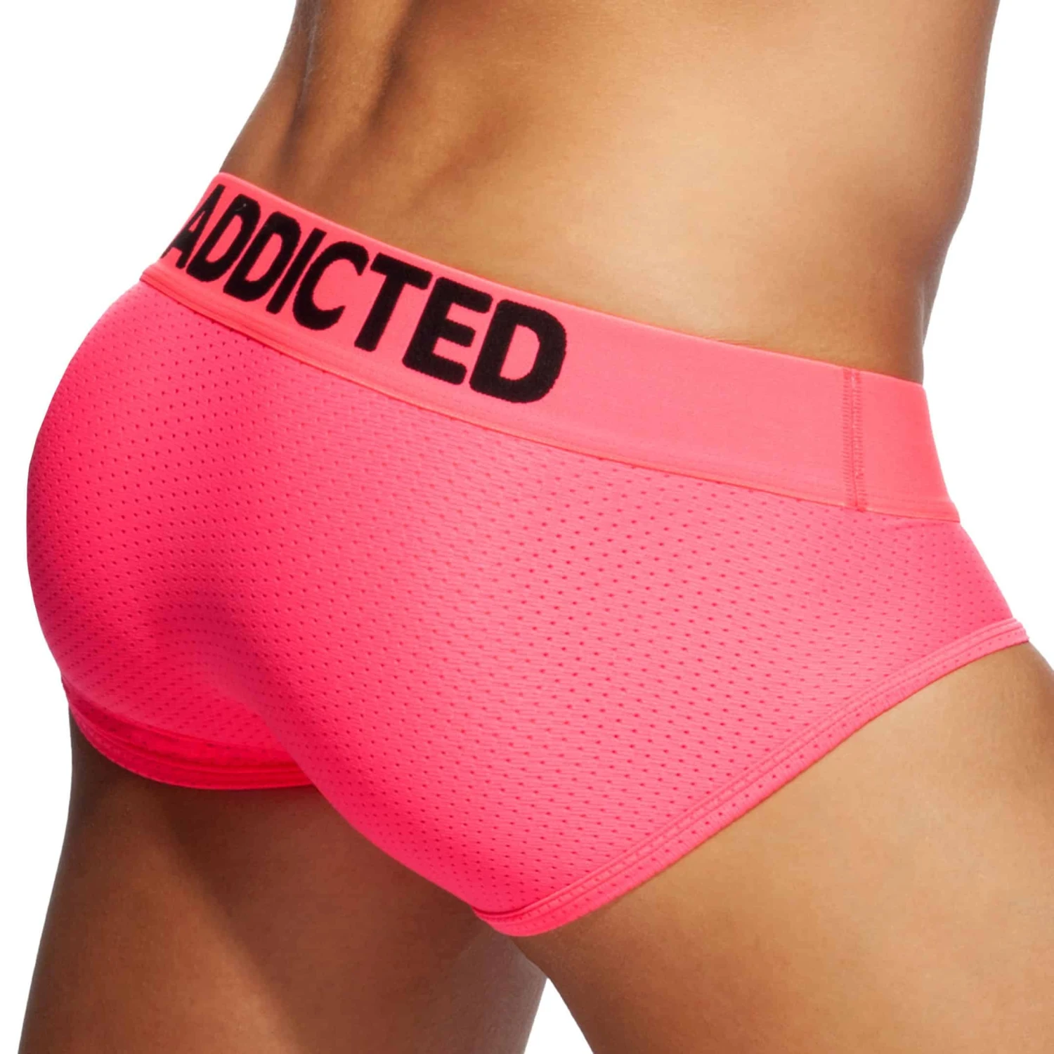 Slip taille basse révolutionnaire en mesh sport, léger et respirant de couleur fluo. Technologie RingUp intégrant un anneau cock ring en silicone (diamÚtre 5 cm, amovible par bouton pression) pour une érection plus dure et plus longue. Poche frontale push up pour mettre en avant votre masculinité, tout en assurant un maintien trÚs confortable. Ceinture élastique contrastée signée Addicted.