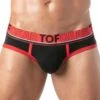Slip trÚs sexy en microfibre extensible douce et respirante. EmpiÚcements en résille semi-transparente sur les cÎtés et les fesses. Motif circuits imprimés de couleur contrastée sur la ceinture élastique. Découpes provocantes devant et derriÚre. Mini poches sur les cÎtés. Petit anneau métallique au dos. Patches Breedwell en PVC de haute qualité.
