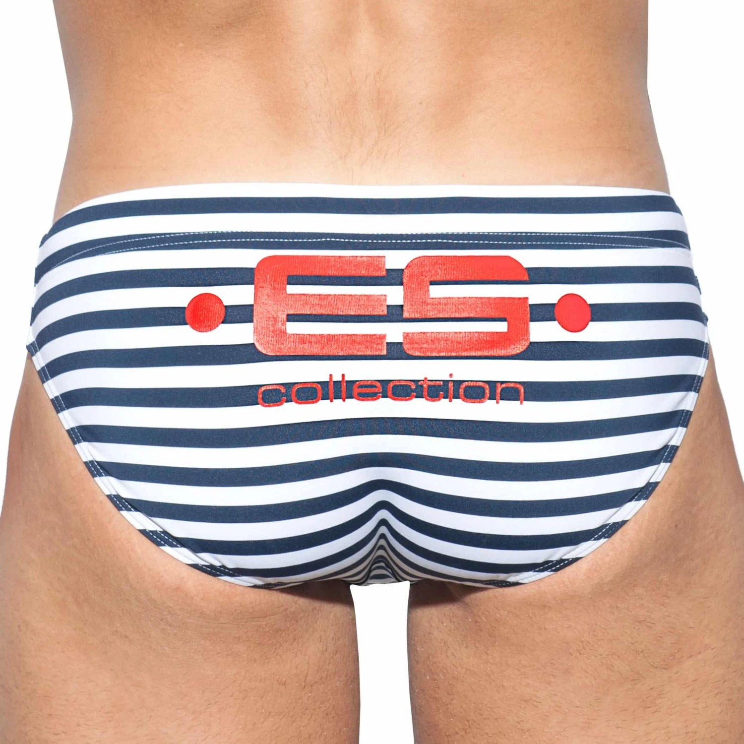 Slip de bain taille basse, sexy et trĂšs ajustĂ©, en microfibre rĂ©sistante et confortable. ImprimĂ© rayĂ© façon mariniĂšre. SystĂšme Pack Up intĂ©grĂ© avec mousse amovible double Ă©paisseur pour plus de volume. Ceinture Ă©lastique avec cordon de serrage. Grand logo ES Collection de couleur contrastĂ©e Ă l’arriĂšre.