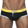 Slip de bain taille en microfibre séchant rapidement. Coupe classique et confortable. Poche frontale doublée opaque. Ceinture élastique avec cordon de serrage intérieur. Logo Modus Vivendi sous la ceinture élastique.
