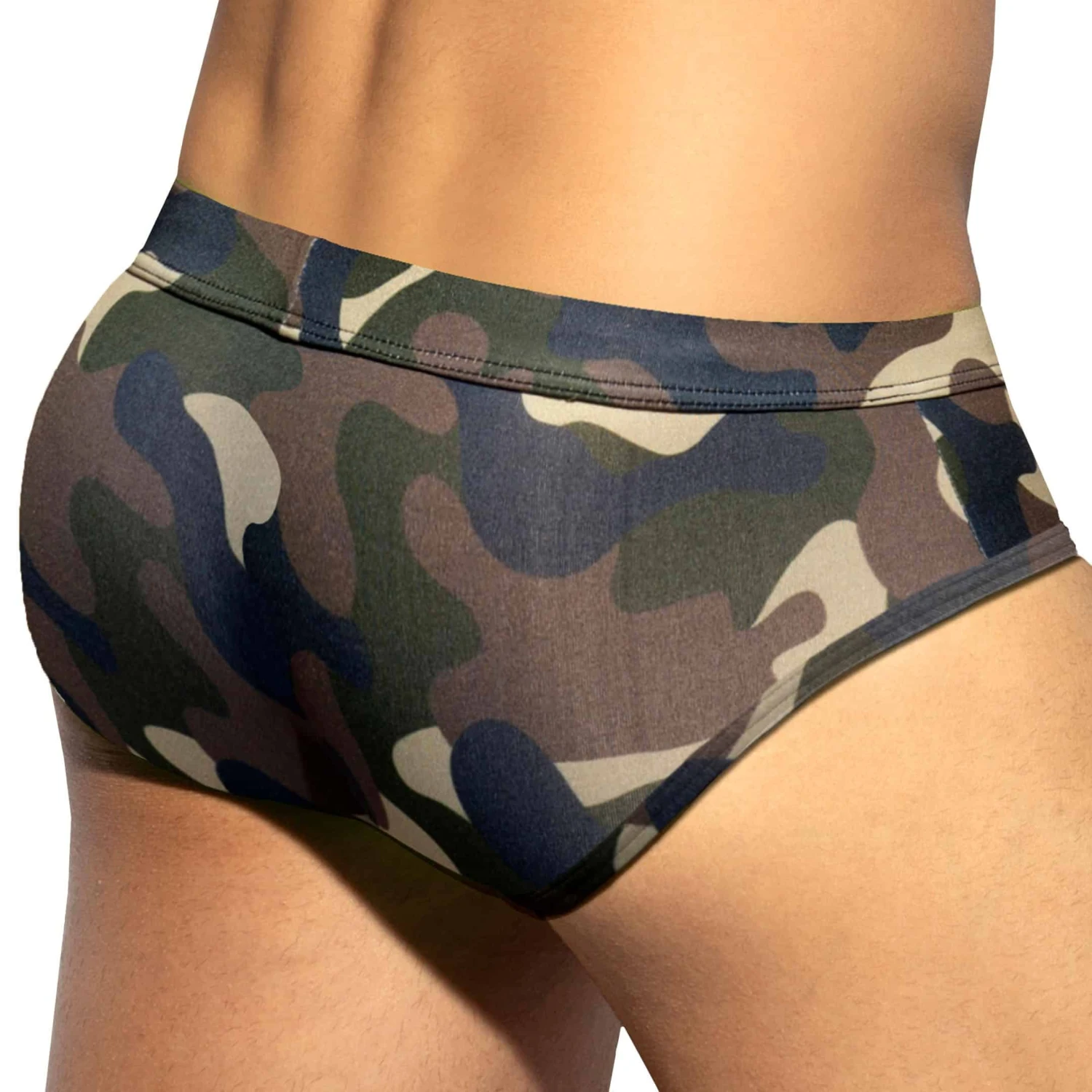 Slip de bain taille basse en microfibre douce et légÚre. SystÚme Pack Up intégré avec mousse amovible pour plus de volume frontal. Logo ES Collection imprimé en 3D sur la hanche droite. Ceinture élastique avec cordon de serrage.