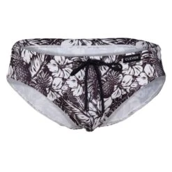 Slip de bain taille basse en microfibre stretch douce et confortable. Imprimé floral original. Coupe minimaliste trÚs ajustée. Ceinture élastique avec cordon de serrage.