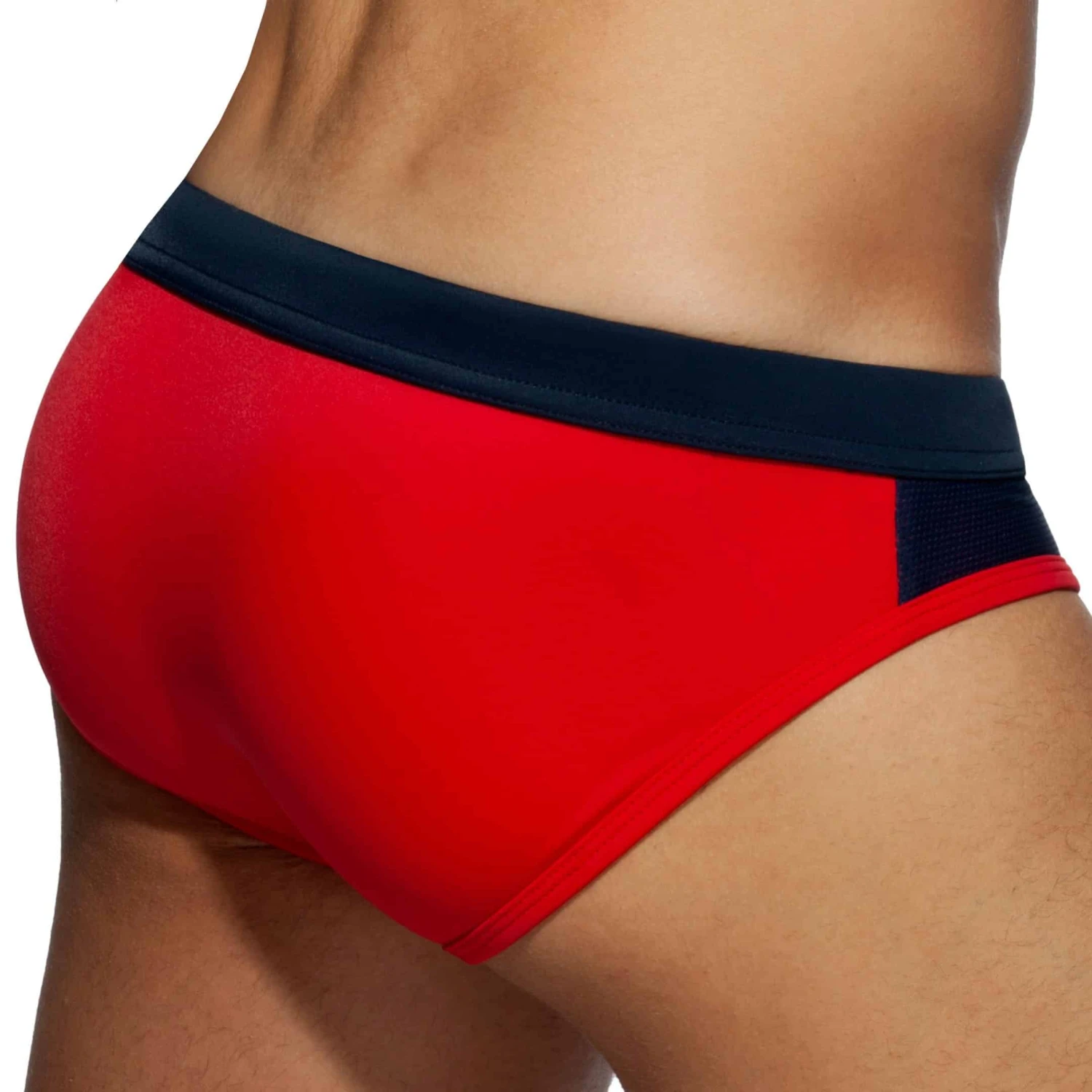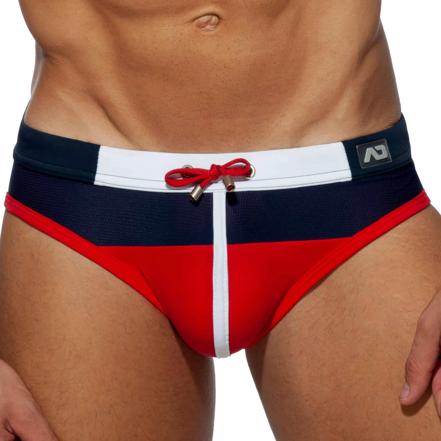 Slip de bain taille basse en microfibre confortable et résistante. SystÚme Pack Up intégré avec mousse amovible pour mettre en avant votre masculinité. Détails de couleur contrastée. Logo AD en silicone. Cordon de serrage.