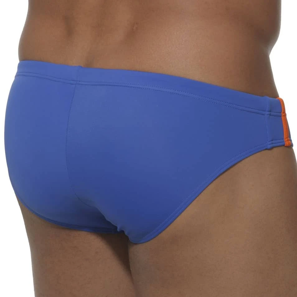 Slip de bain taille basse, sport, sexy et trÚs ajustée. Logo Addicted sur le cÎté droit. Bandes latérales de couleurs contrastées. Cordon de serrage.
