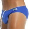 Slip de bain sexy, taille ultra basse, de couleur unie. Logo Modus Vivendi cousu sur la hanche gauche.
