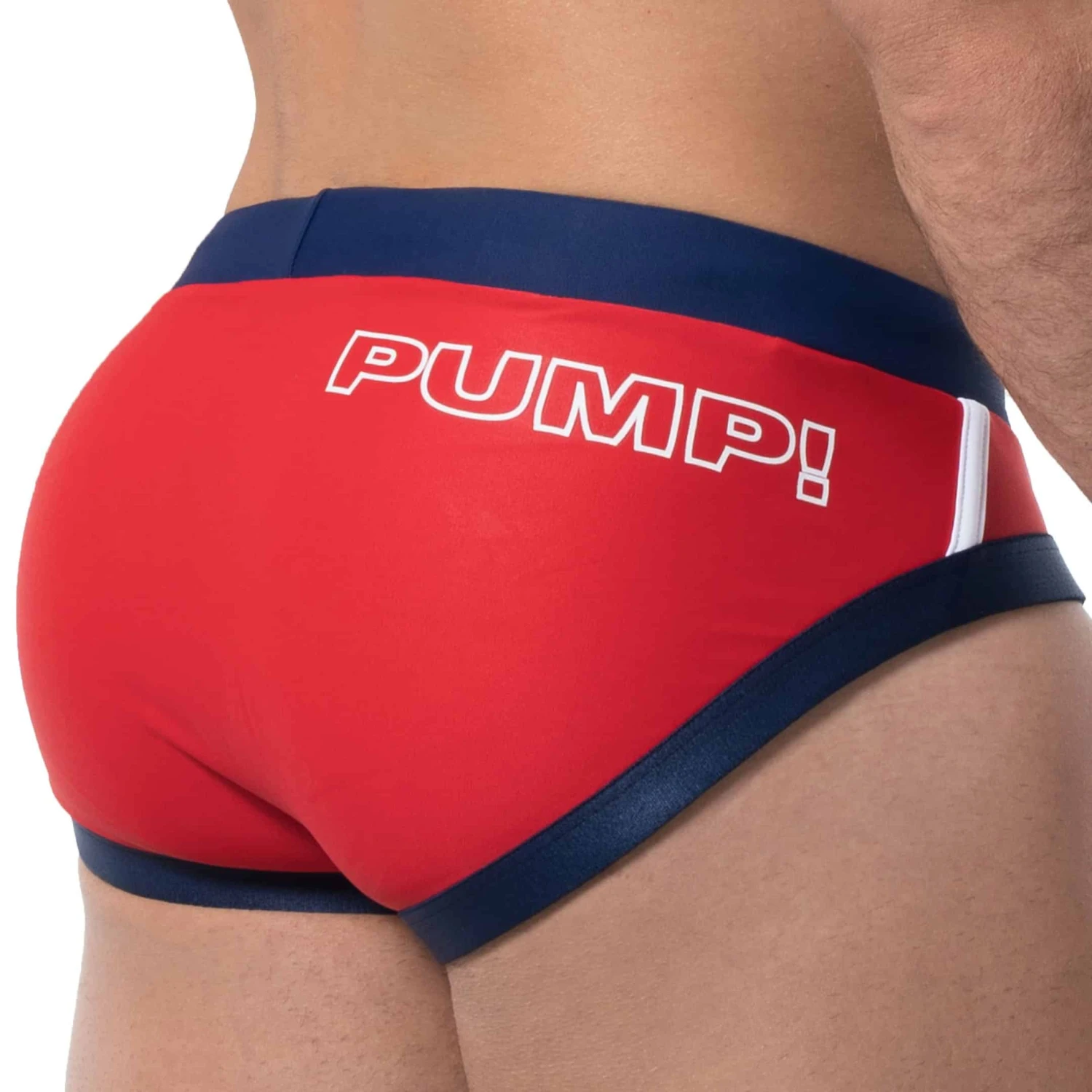 Slip de bain en microfibre Lycra Xtra Life résistante au chlore et aux UV (UPF 50+). Bandes sport sur les cÎtés. Gros logo Pump! en silicone sur la fesse droite. La double bande élastique sur la jambe accentue le galbe de vos fesses. Ceinture élastique avec cordon de serrage.