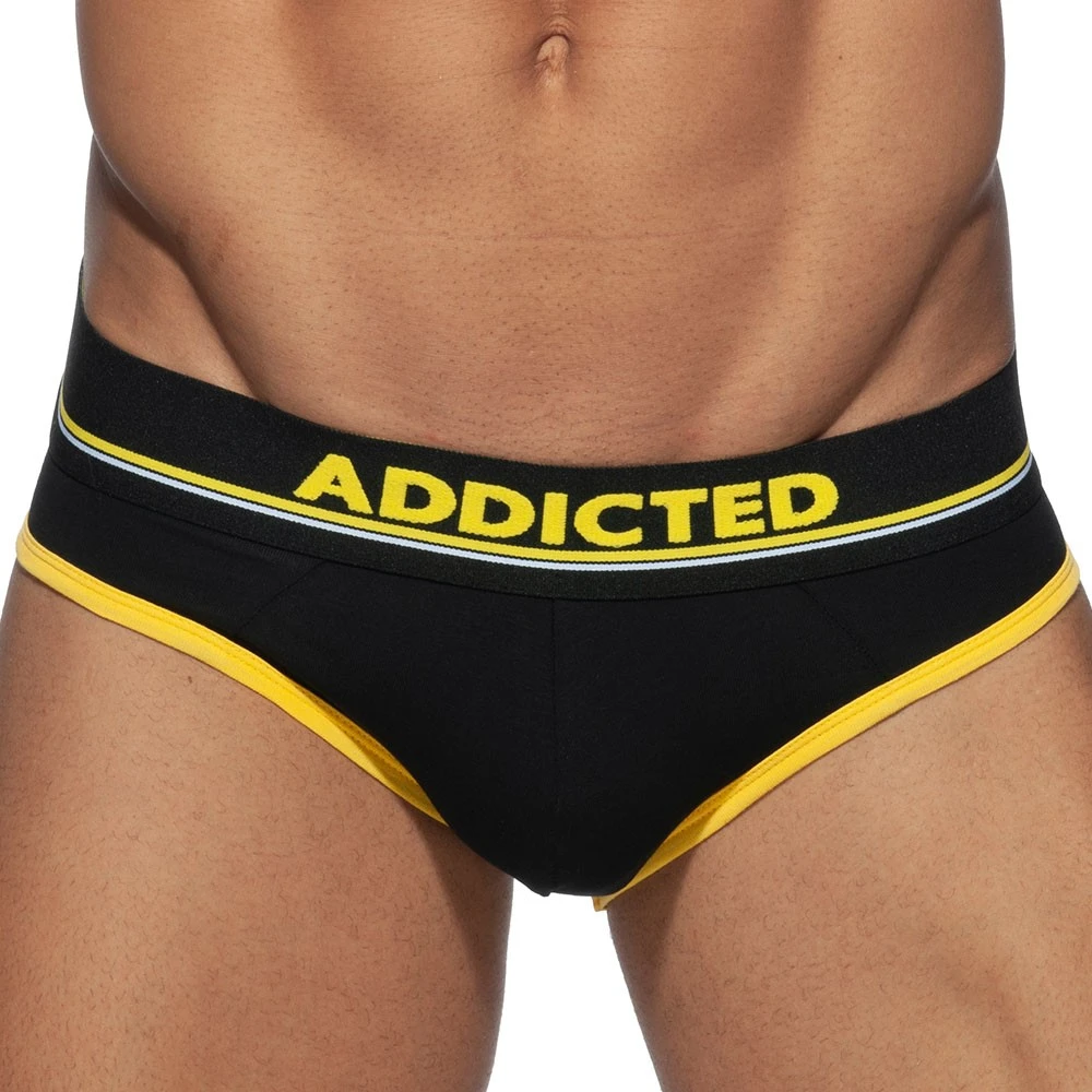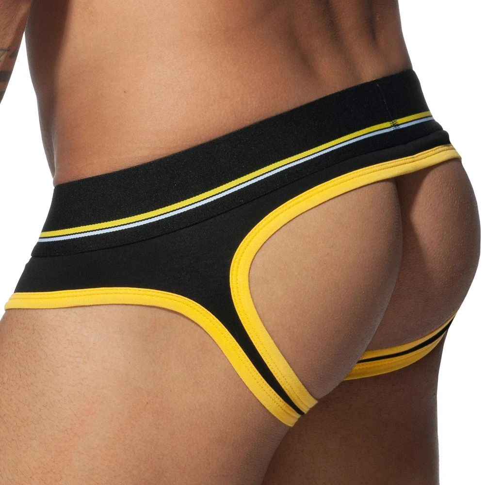 Slip taille basse, original, sexy et super confortable en coton doux et confortable. L’arriĂšre a Ă©tĂ© dĂ©coupĂ©, Ă la maniĂšre d’un jockstrap, afin d’offrir une totale libertĂ© de mouvement. Bordures de couleur contrastĂ©e. Ceinture Ă©lastique signĂ©e Addicted. EXCLUSIVITE : coupe conçue par Les Dessous d’Apollon – Inderwear.