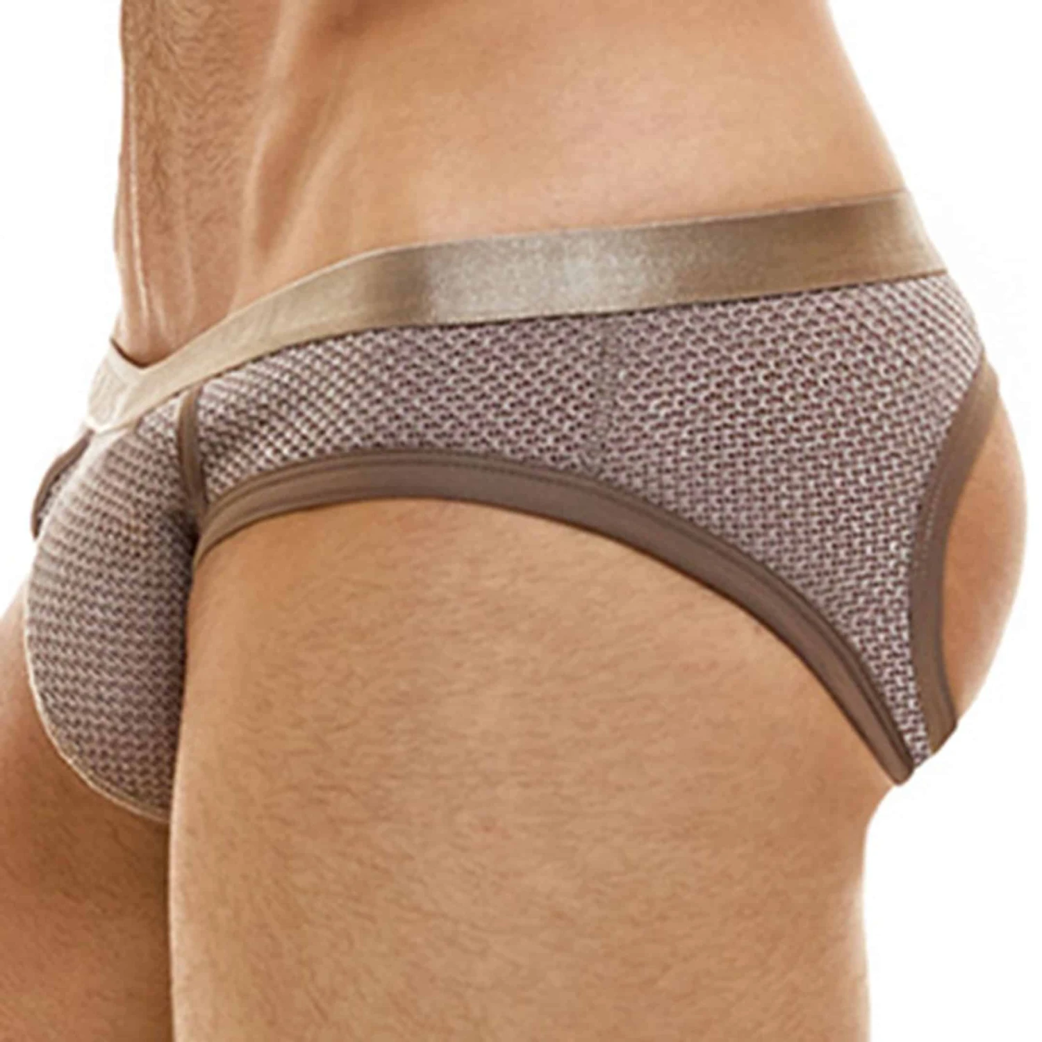 Slip taille basse en tissu tricotĂ© original et sexy. L’arriĂšre a Ă©tĂ© dĂ©coupĂ© Ă la maniĂšre d’un jockstrap, afin d’offrir une totale libertĂ© de mouvement. Poche frontale prĂ©formĂ©e non doublĂ©e. Ceinture Ă©lastique fine signĂ©e Modus Vivendi.