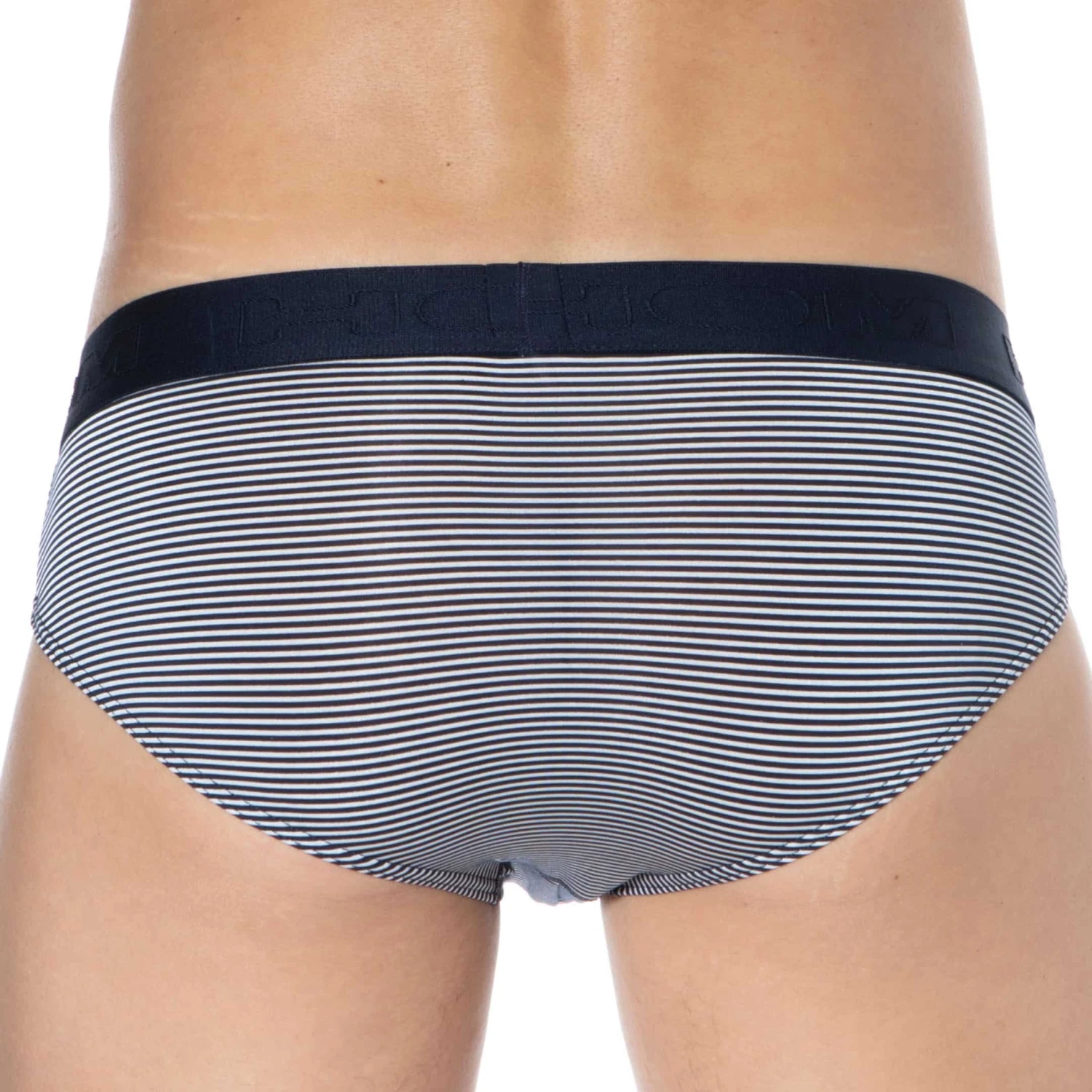Slip en modal doux et soyeux. Rayure fine et élégante. Coupe classique assurant confort et maintien. Ouverture horizontale HO1 brevetée par HOM, aussi pratique pour les droitiers que les gauchers. Ceinture élastique HOM.