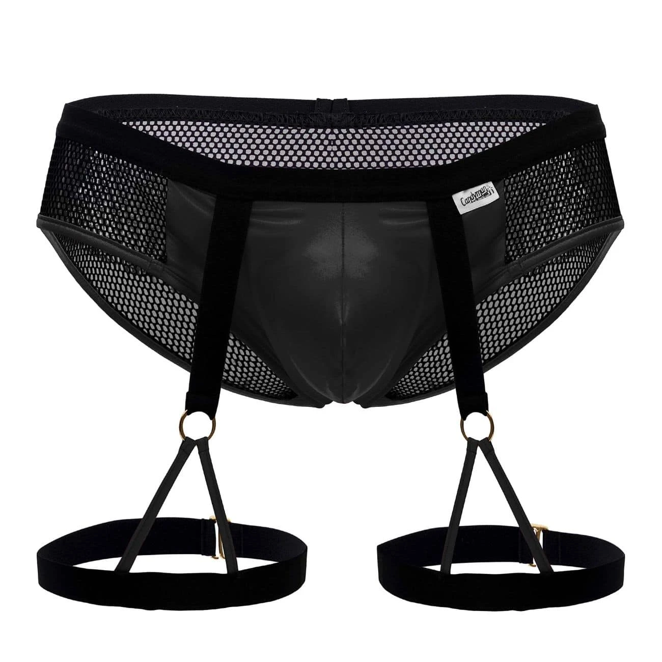 Slip Jarretière Résille Et Simili Cuir Noir