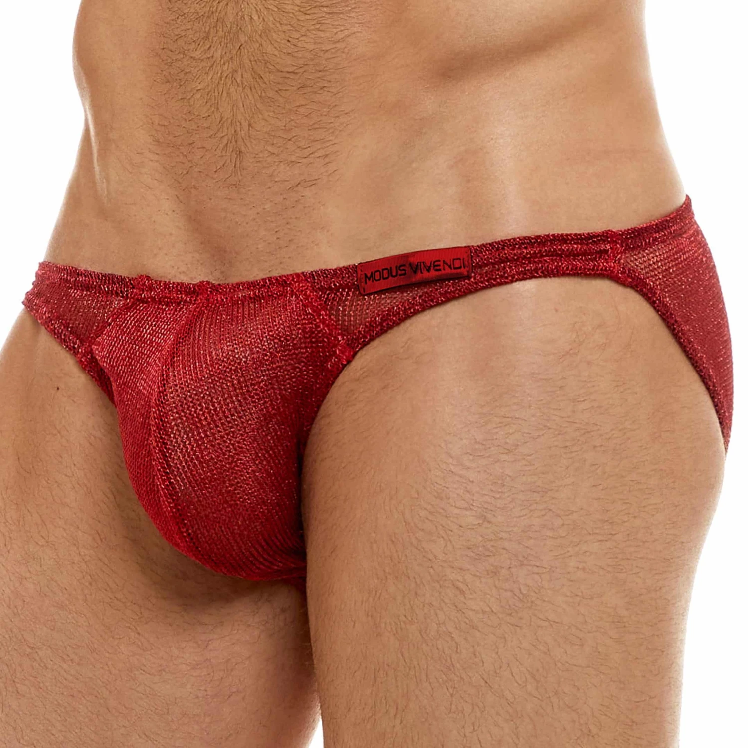Slip semi-transparent tricoté à base de fils métallisés Lurex pour un parfait effet cotte de mailles. Poche frontale préformée et doublée. Coupe minimaliste, taille basse et trÚs sexy. Ceinture élastique fine avec étiquette Modus Vivendi. Fabriqué en GrÚce.