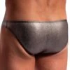 Slip mini taille basse en microfibre extensible satinée. Bande décorative sertie de cristaux sur la poche frontale non doublée. Ceinture élastique fine et recouverte. Logo MV en lettres de cristal sur la fesse droite.