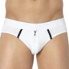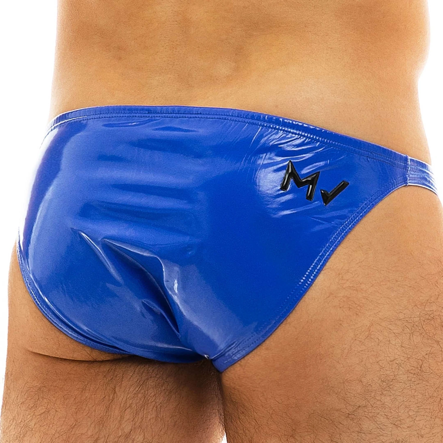 Slip ultra taille basse en vinyle brillant pour un look fetish. Fine ceinture élastique recouverte. Logo MV en relief devant et derriÚre.