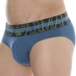 Slip en coton bio extensible, trÚs doux et confortable. Coupe taille basse, simple et élégante. Poche frontale doublée. Large ceinture élastique contrastée signée Emporio Armani.