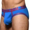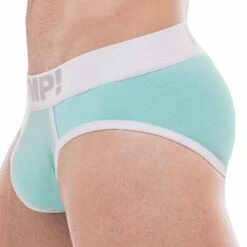 Slip doux et confortable en coton extensible de couleur pastel. Tissu respirant, frais et léger. Détails de couleur contrastée. Poche frontale doublée. Ceinture élastique signée Pump! .