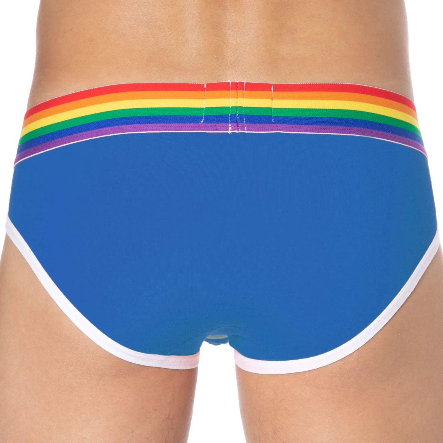 Slip sport et sexy en coton premium doux et extensible de couleur intense. Coupe taille basse ajustée. Poche frontale préformée assurant un excellent maintien. Confort enveloppant sur les fesses. Belle échancrure sur le cÎté. Ceinture arc-en-ciel, large et douce, signée SKU. Bordures contrastées.
