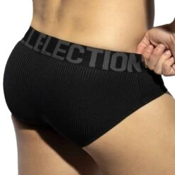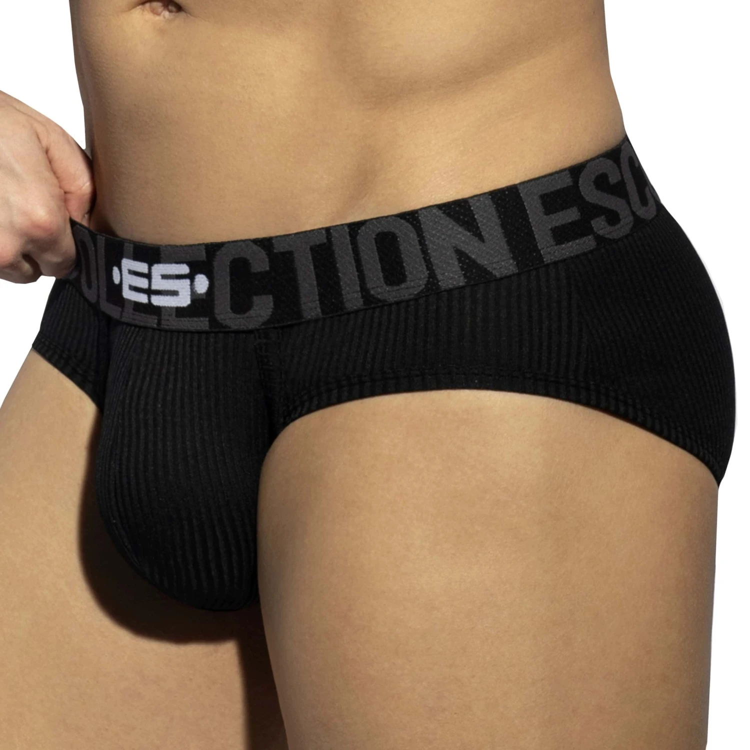Slip taille basse en microfibre cÎtelée. Tissu recyclé doux et extensible. Grande poche frontale pour un confort optimal. Ceinture élastique en jacquard signée ES Collection.