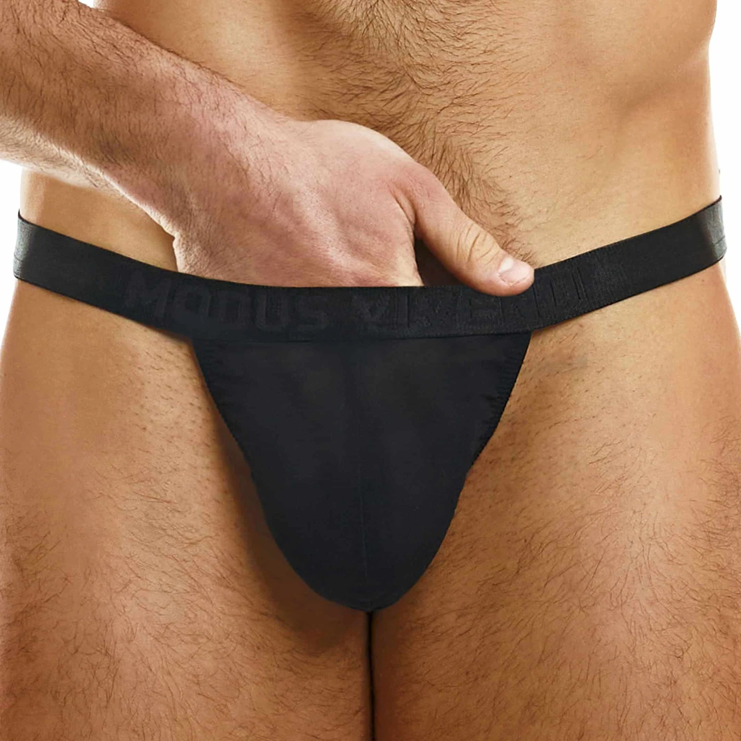 Slip tanga taille basse trÚs sexy et ajusté en mousseline transparente. Poche frontale doublée. Ceinture élastique signée Modus Vivendi.
