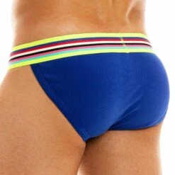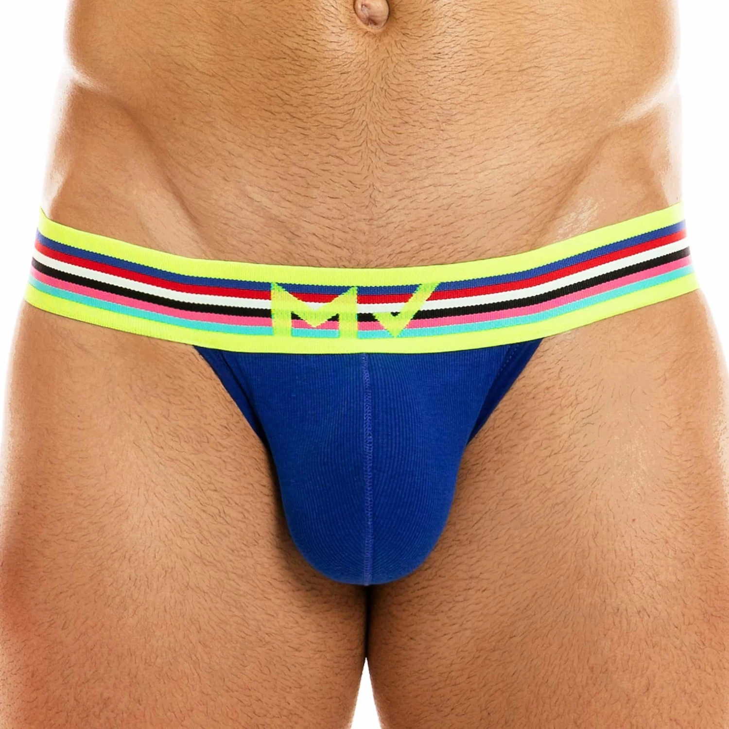 Slip taille basse en coton cĂŽtelĂ©, doux et confortable, de couleur intense. Coupe tanga trĂšs sexy. Ceinture Ă©lastique rayĂ©e aux couleurs de l’arc-en-ciel.