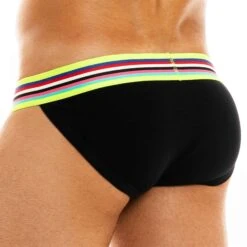 Slip taille basse en coton cĂŽtelĂ©, doux et confortable, de couleur intense. Coupe tanga trĂšs sexy. Ceinture Ă©lastique rayĂ©e aux couleurs de l’arc-en-ciel.