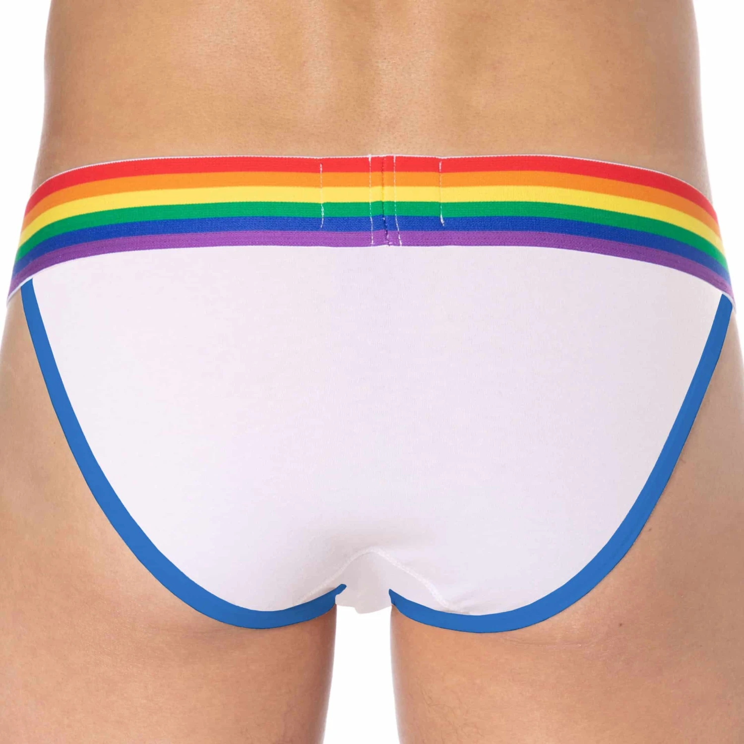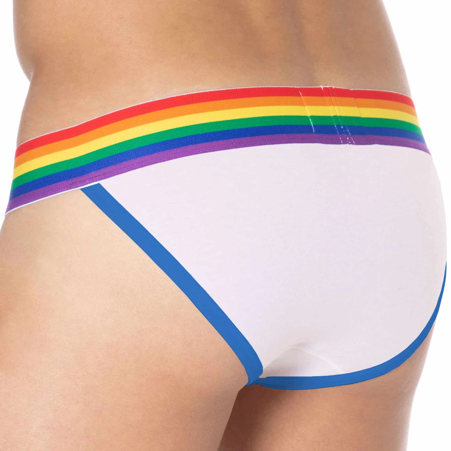 Slip sport et sexy en coton premium doux et extensible de couleur intense. Coupe tanga, taille basse et ajustée. Poche frontale préformée assurant un excellent maintien. Confort enveloppant sur les fesses. Ceinture arc-en-ciel, large et douce, signée SKU. Bordures contrastées.