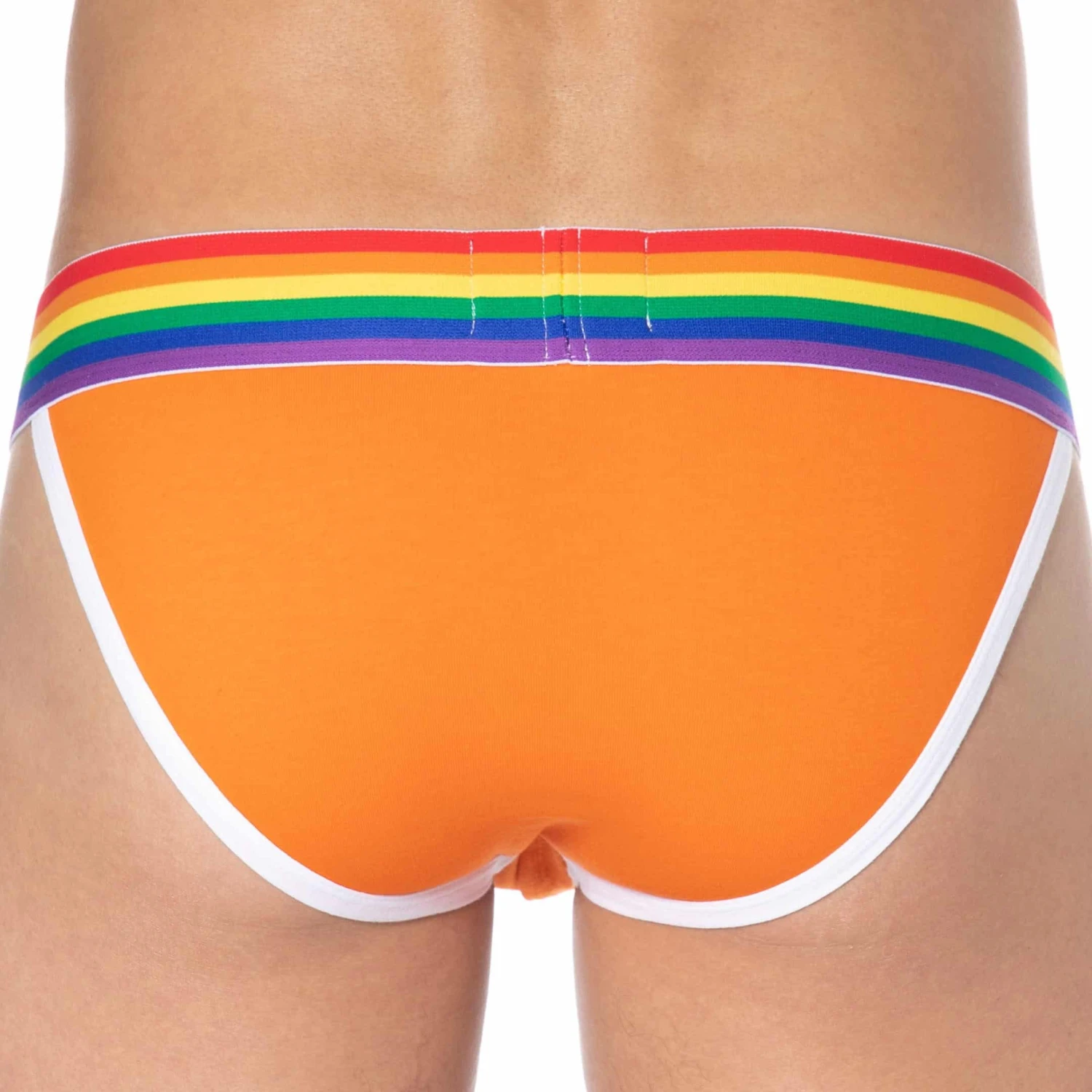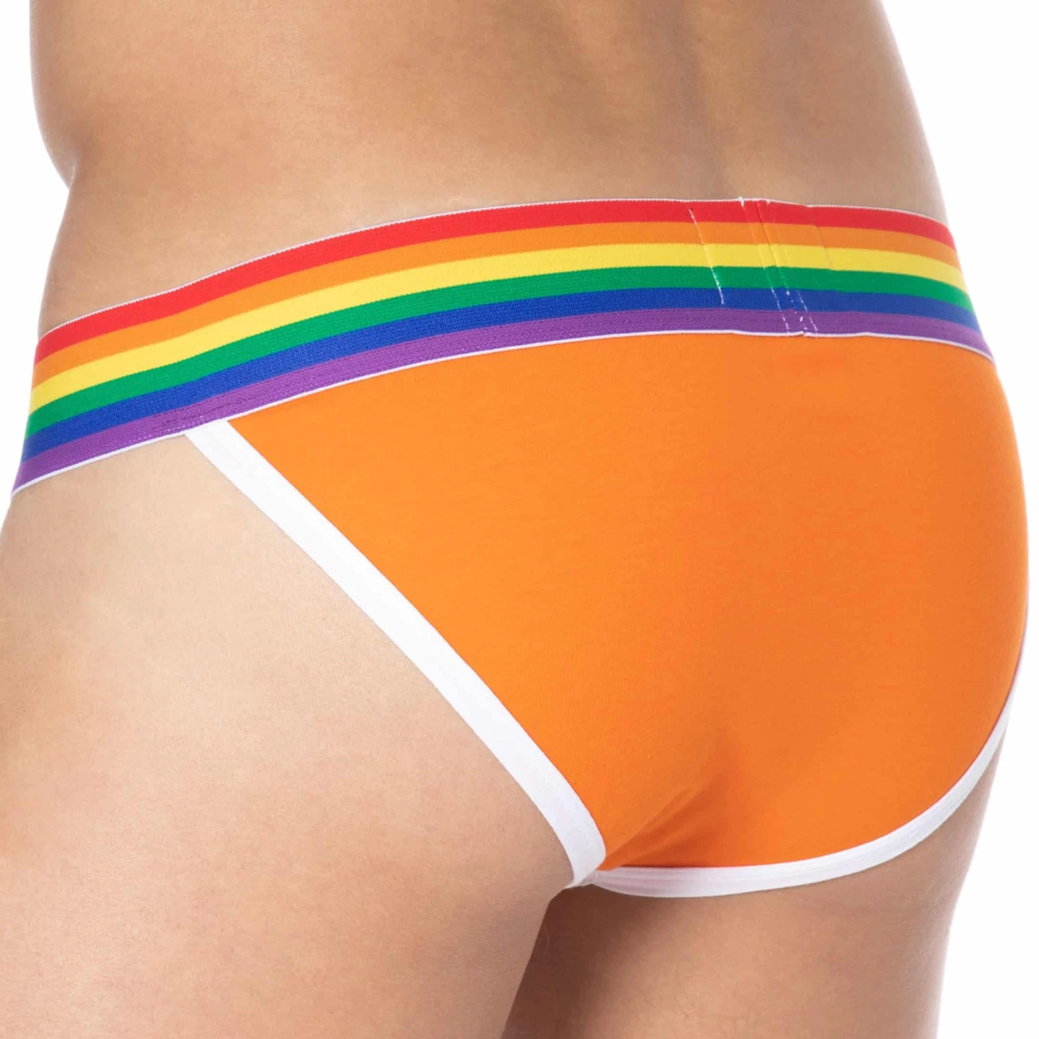 Slip sport et sexy en coton premium doux et extensible de couleur intense. Coupe tanga, taille basse et ajustée. Poche frontale préformée assurant un excellent maintien. Confort enveloppant sur les fesses. Ceinture arc-en-ciel, large et douce, signée SKU. Bordures contrastées.