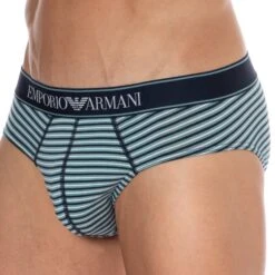 Slip coton extensible teinté, trÚs doux et confortable. Coupe taille basse, simple et élégante. Poche frontale doublée. Ceinture élastique signée Emporio Armani.